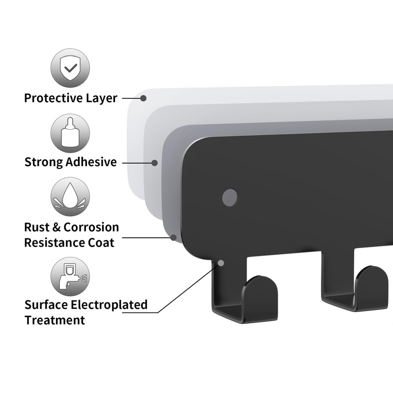 - Strong Adhesive - High-viscosity adhesive complements the key hooks wall mounted to further its durability. In a thousand testing, the sticky hooks never failed to support 6 kg. A proper installation of our adhesive hook as depicted in the image allows for a weight capacity of 6 kilograms.
