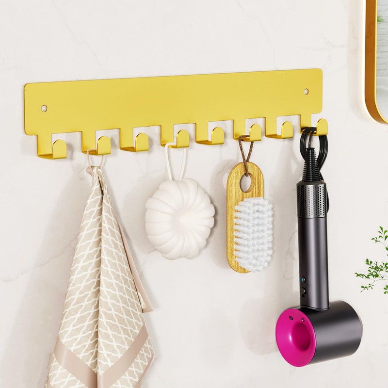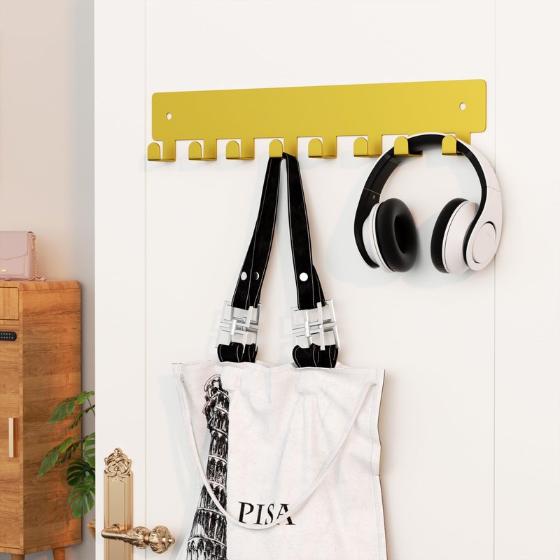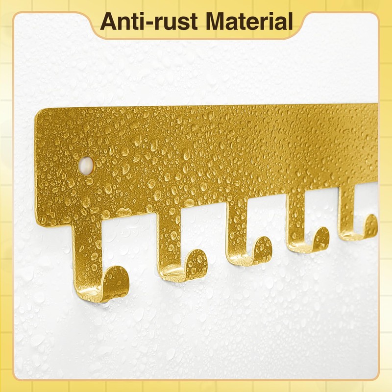 pickpiff Gold Key Holder for Wall Adhesive, Key Hooks with 8 Hooks Wall Mounted, Key Hangers No Drill for Living Room, Kitchen, Office
