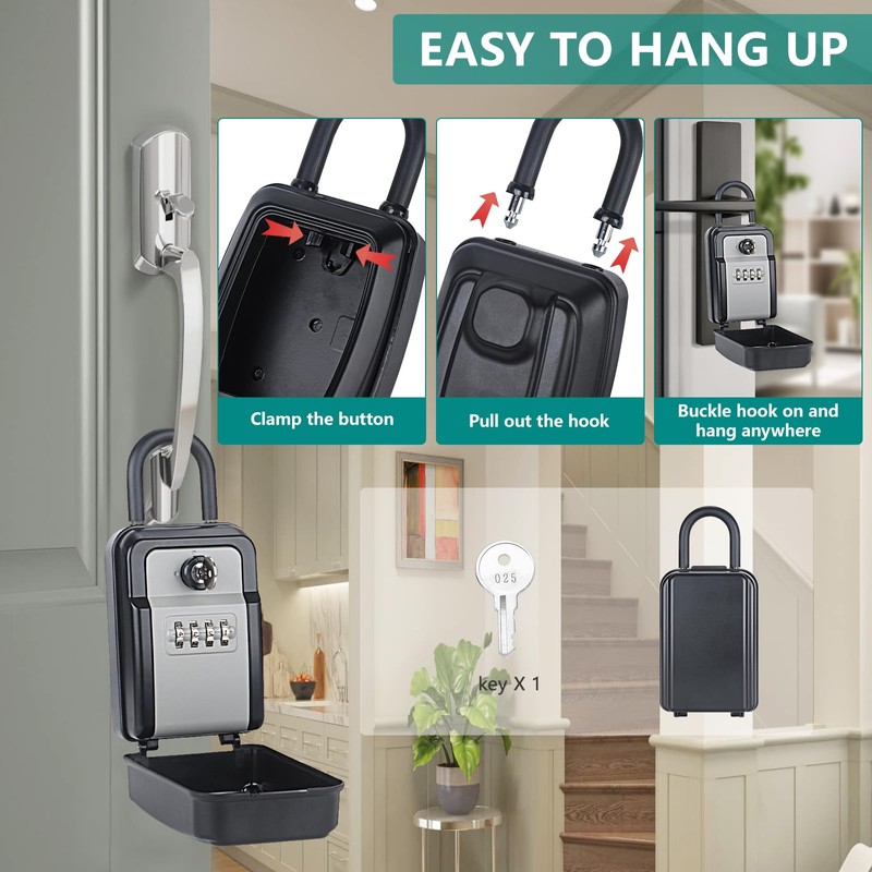 - MULTI-PURPOSE LOCK BOX: It's a versatile and convenient key lock box with code for indoor and outdoor use, suitable for different scenarios such as front door, garage, office warehouse,ect, perfect for family and friends to visit and emergency backup.