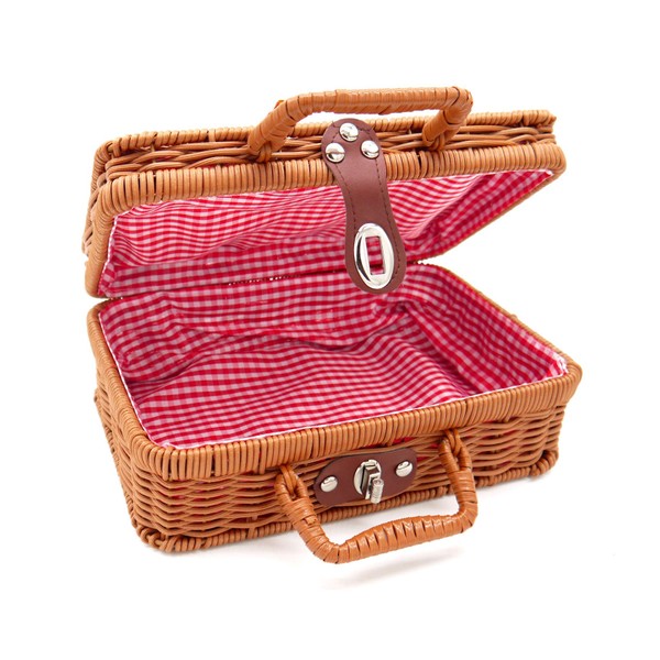 Picnic Basket with Lid, Fashionable, Basket, Picnic, Wicker, Lunch Basket, Upholstered, 10.2 x 7.1 x 3.9 inches (26 x 18 x 10 cm)