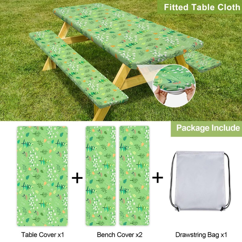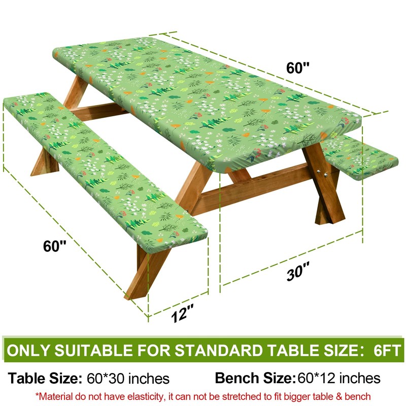 - 【PACKAGE INCLUDE】Suitable for Standard 5FT Table and Bench. The camping tablecloth 3 pcs set includes 1 x picnic table cover, 2 x bench covers, fitted for 60"x 30" rectangle tables and 60"x 12" benches. Package additional include a drawstring bag for easy storage and carring around, practical for camping, picnic, barbeque and other outdoor activities.