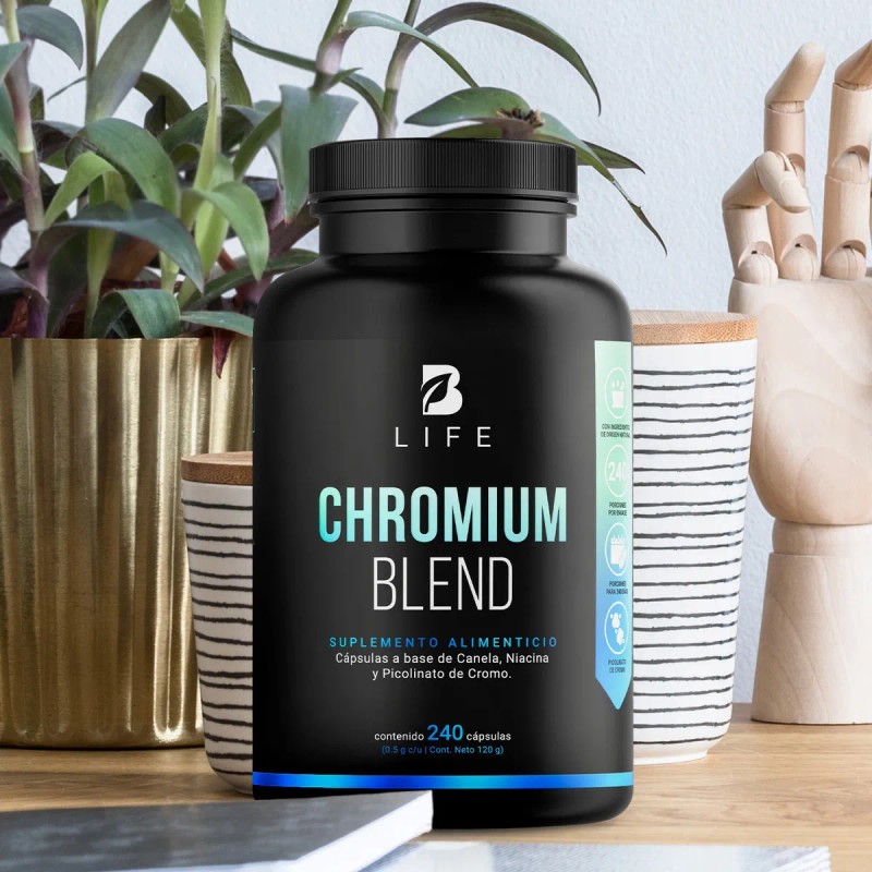 Descripción Limpia: ¡Alcanza tu equilibrio natural con Chromium Blend B Life! Cada cápsula contiene 500 mg de una asombrosa combinación de Picolinato de Cromo, Niacina y Canela, en contraste con otras formulaciones que proporcionan solamente 400 mg. Ingredientes que impulsan tu bienestar. Contiene 240 cápsulas.