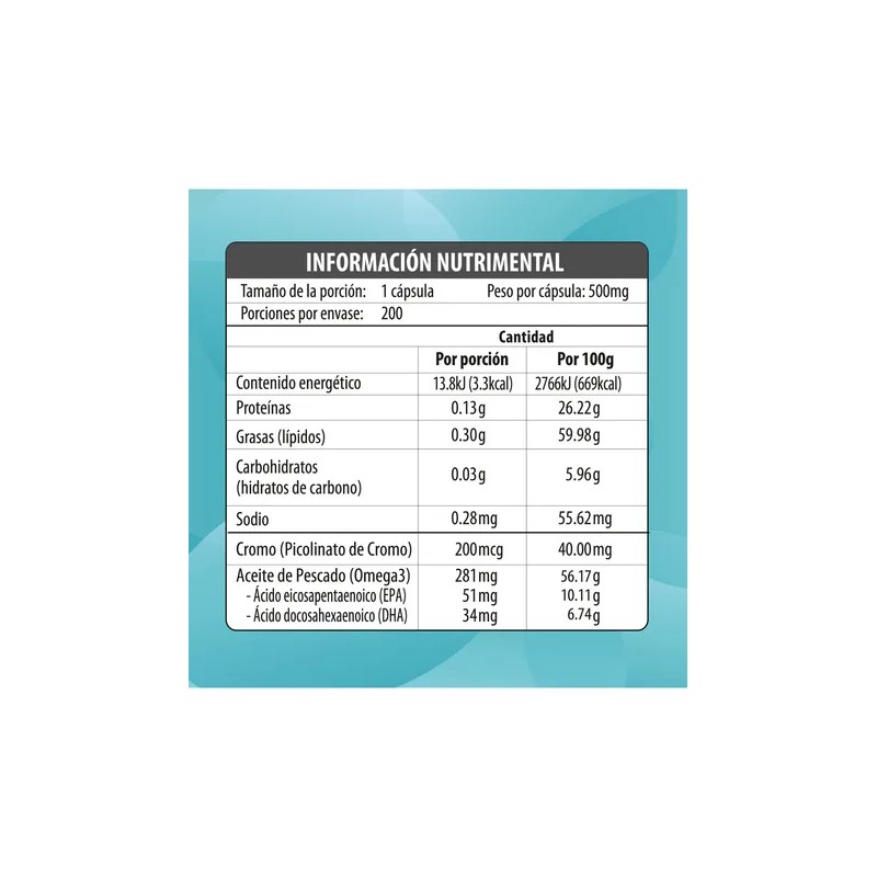 Picolinato De Cromo + Omega 3 | 200 Softgels | Maklen Sabor Sin sabor