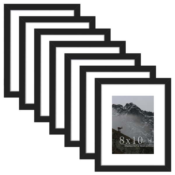 Picrit 8x10 Picture Frame Set of 7, Display 5 x 7 with Mat or 8 x 10 Without Mat, Photo Frames for Wall Mounting or Table Top Display, Black.