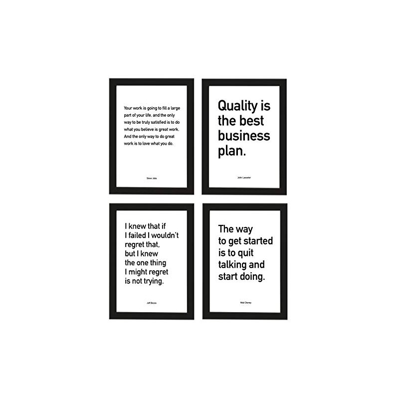 PicsonPaper, Set of 4 Business Quotes Unframed A4 Poster Quotes by Jeff Bezos, Steve Jobs, John Lasseter and Walt Dinsey, Startup, Entrepreneur, Motivation
