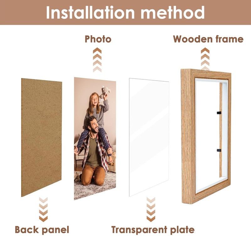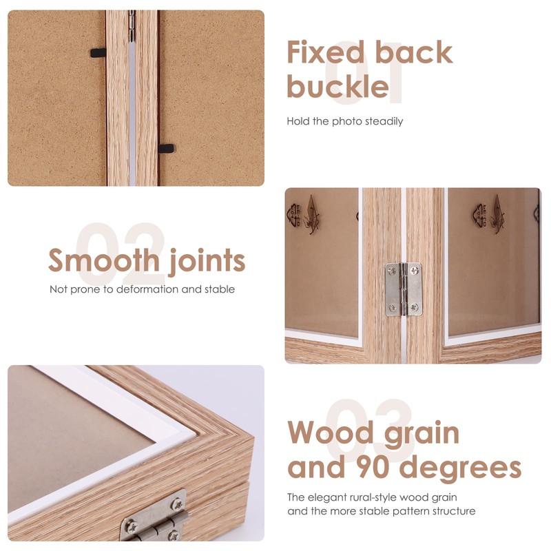 - High-quality materials: the folding picture frame made of high-quality MDF wood, has a 1.5 cm thick vertical frame, is dust and moisture resistant, stable and does not deform. The front of the frame is made of an acrylic plate, which is transparent, scratch-resistant and easy to clean, and is connected with metal hinges that do not rust easily and fold smoothly. Thanks to the high-precision handmade, all parts of the frame are robust, stable and durable.