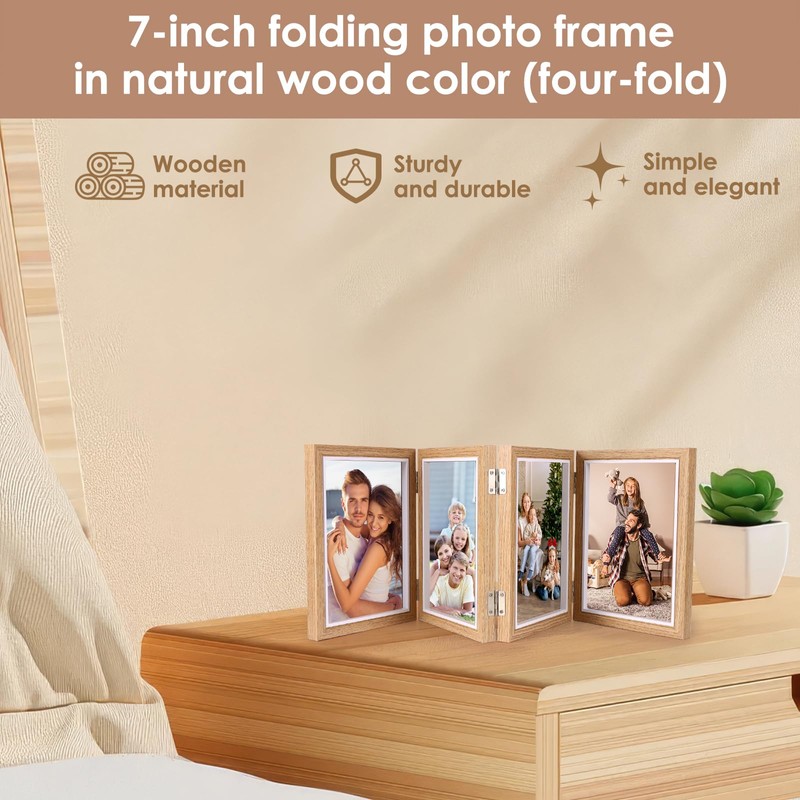 Original wood-coloured 7-inch folding picture frame (four pieces) - make the beautiful memories come alive!