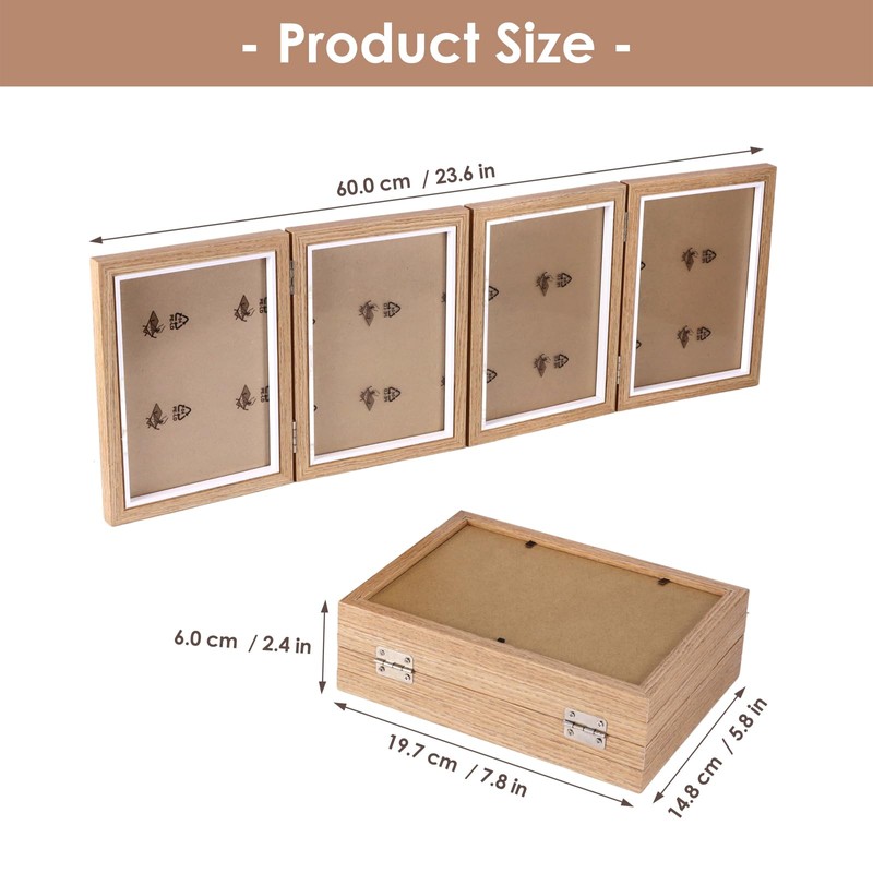 Are you still regretting that a single picture frame can't display multiple photos? This foldable picture frame, a four-piece wooden frame, can be opened and closed freely to change its shape and thus display your beloved photos in a dynamic way! Give your home a natural and warm atmosphere.
