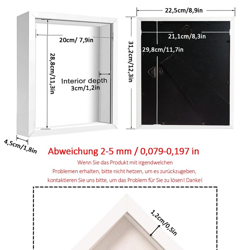 Picture Frame for Filling, Deep Picture Frame for Filling, 21 x 30 cm, with Transparent Acrylic Plate, 3D Object Frame, Deep 3 cm, for Wedding Gift or Memorabilia, White