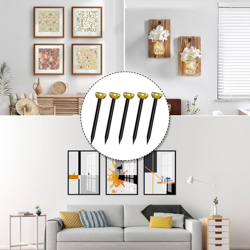 - 💚【Great Material】Made of high-quality steel and brass materials, the picture hanging nails are not easy to bend, durable, reusable, and has a long service life.