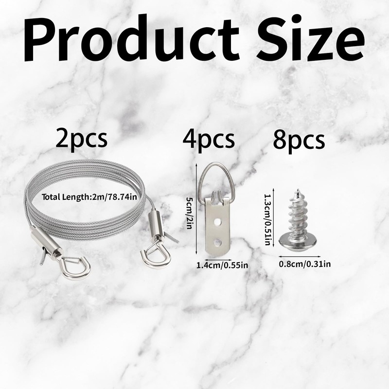 - Durable and Reliable Materials:These materials are chosen for their ability to support up to 50lbs without breaking or deforming. The Picture Wire is designed to last, providing a long service life and ensuring that your decorations remain securely in place. The included hardware, such as D rings and screws, is also made from durable materials, making this kit a reliable choice for all your hanging needs.