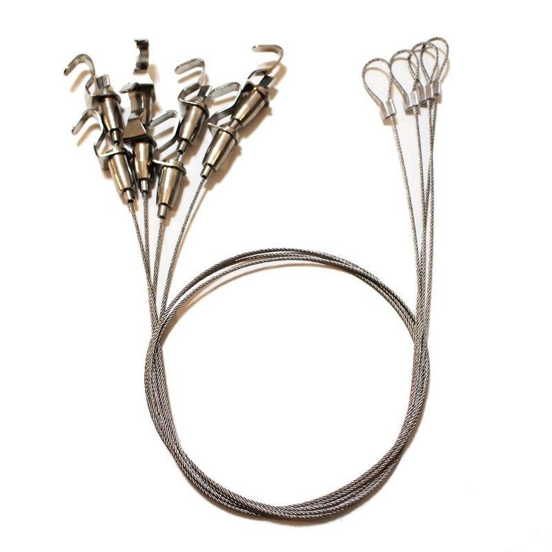 Picture Rail Stainless Steel Wire Hanging Hardware Silver Set of 4 (1 Meter, 2 Hooks)