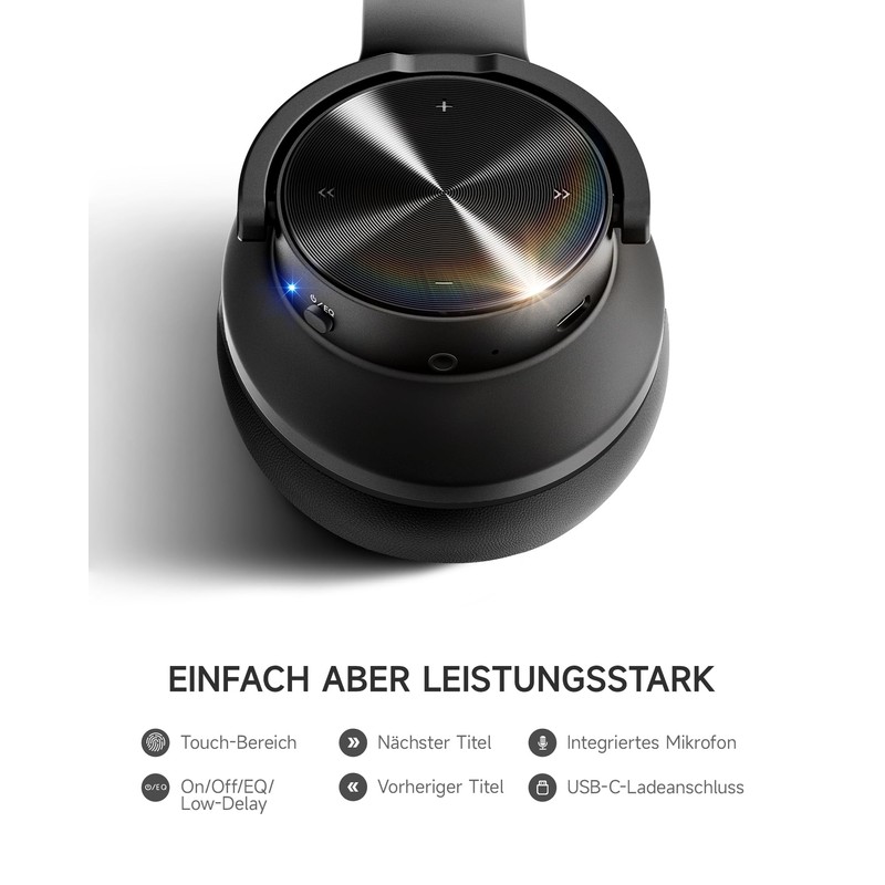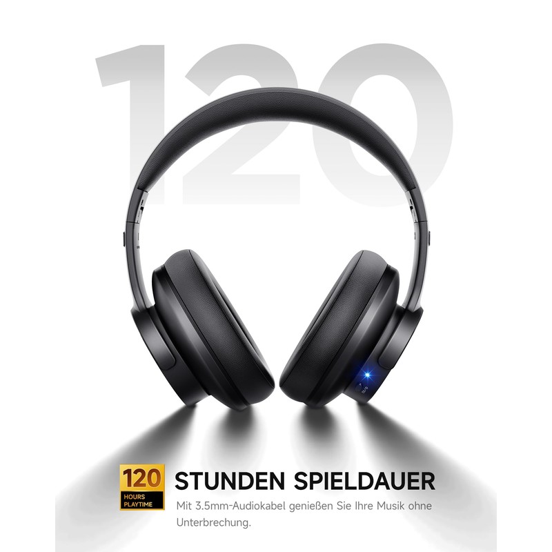 Picun B8 Bluetooth Headphones, 120H Playtime Headphone Wireless Bluetooth with 3 EQ Modes, Low Latency, Hands-Free Calls, Over Ear Headphones for Travel Home Office Cellphone PC Black