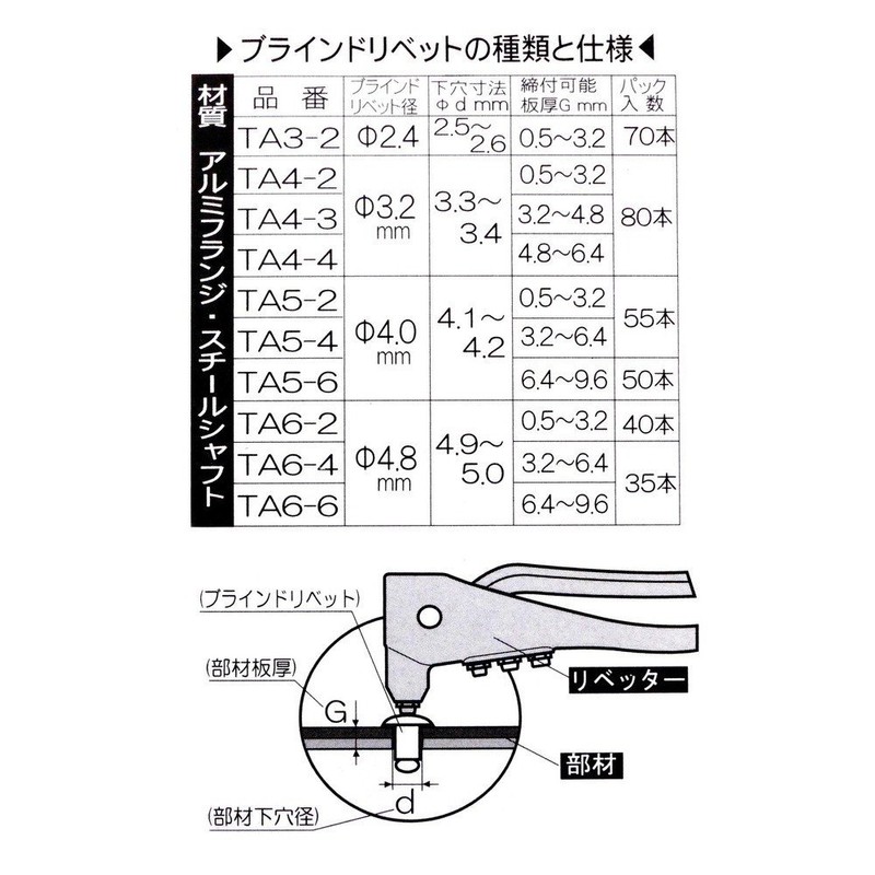 • Note: This product is for use in a rivet set. Detailed instructions are provided on the product instructions for the Riveter's main unit, so please read carefully before use. Please do not use rivets for anything other than their intended purpose