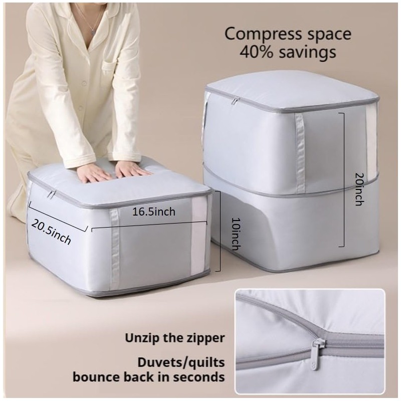 - 【Large Space Organizer Bag】Super space saving self compressing storage bag, perfect for storing and organizing blankets, quilts, sweaters, duvets, sheets, etc., extra large capacity, can be folded to make the closet more tidy