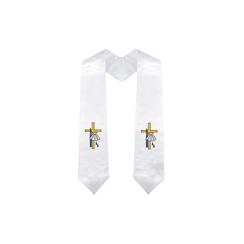 • PREMIUM QUALITY - Our baptismal stoles are meticulously crafted with exquisite attention to detail. Made from soft and durable white satin, these stoles are designed to be a cherished keepsake for years to come. The color white represents is generally worn because the person being baptized is "fresh like the driven manna".