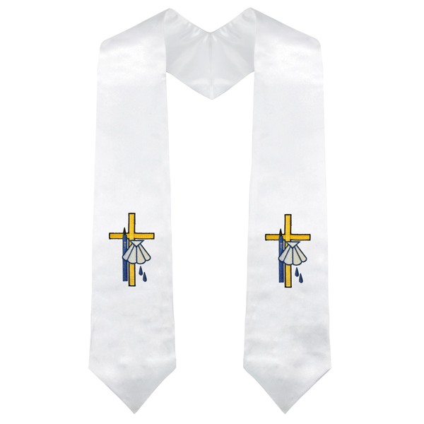 • STUNNING DESIGN - Featuring a beautifully embroidered "Cross, Shell and Candle" design, our baptismal stoles for kids bring a touch of elegance and symbolism to your child's baptism ceremony. This timeless design embodies the purity and grace associated with this important sacrament.