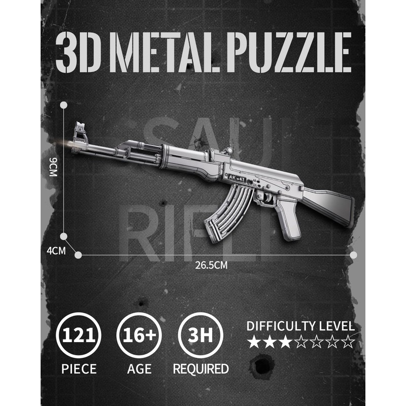 piececool Metal Puzzle 3D AK47 Assault Rifle, Pistol Rifle 3D Puzzle Model Kit Adults, 3D Puzzles for Stainless Steel, Model Metal, Gift, Keepsake, Collection, 121 Pieces