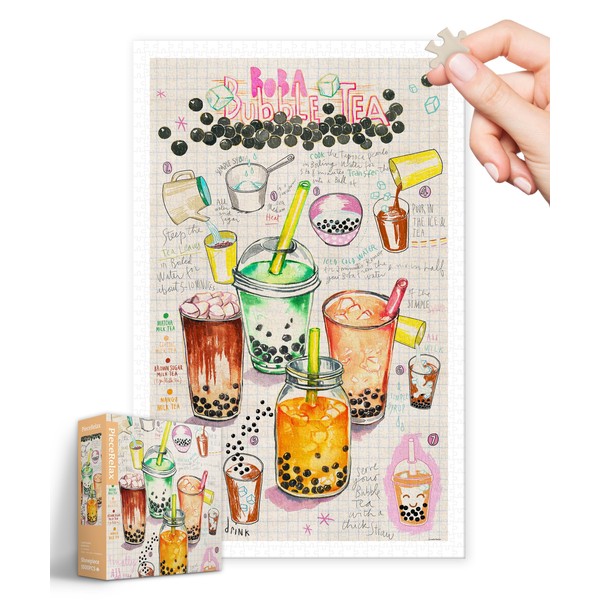 PieceRelax Plastic Jigsaw Puzzles for Adults 1000 Pieces Lucile Prache - Bubble Tea Most Satisfying Table Games and Gifts No Puzzle Mat Required [H3339]