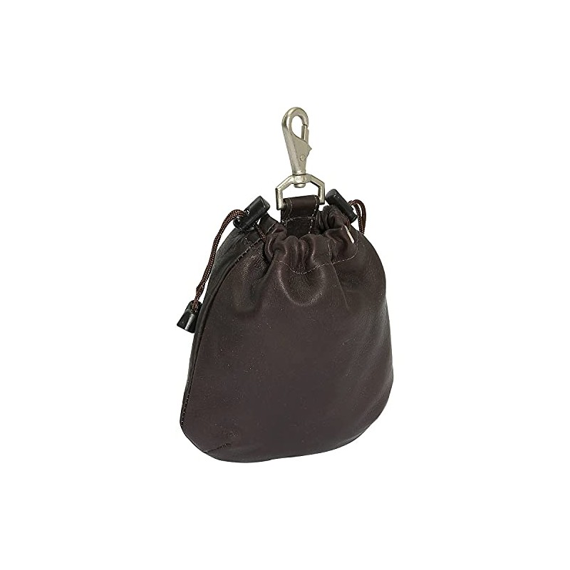 Piel Leather Drawstring Pouch, Chocolate, One Size
