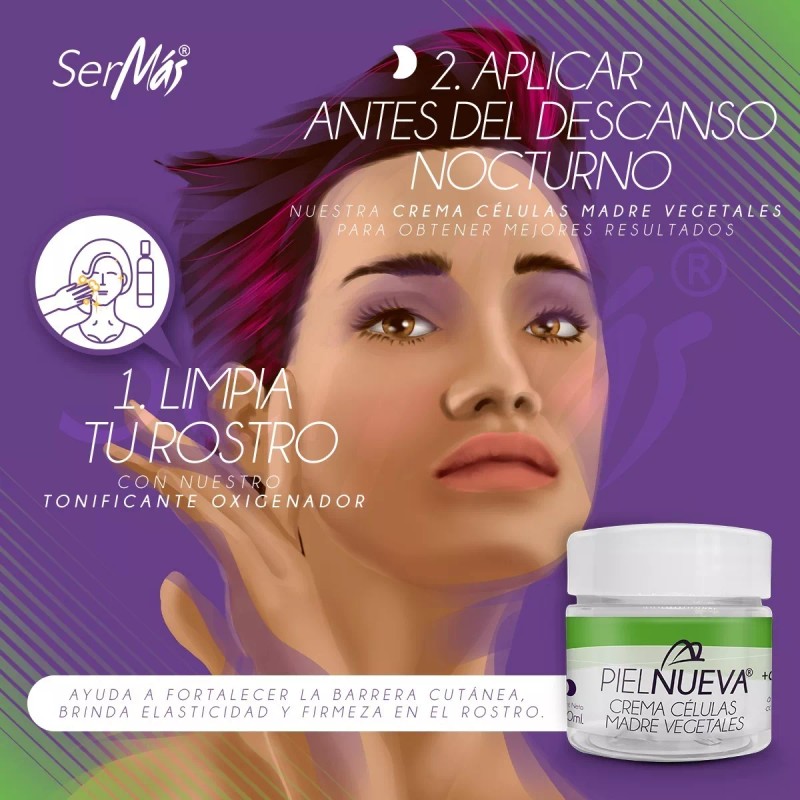 Crema CÉLULAS MADRE VEGETALES es una innovadora formulación que ayuda a fortalecer y regenerar la barrera cutánea, aumenta la vitalidad y mejora la apariencia de la piel. Tratamiento que ayuda a aclarar y desmanchas la piel, controlando la sobreproducción de melanina (pigmento).