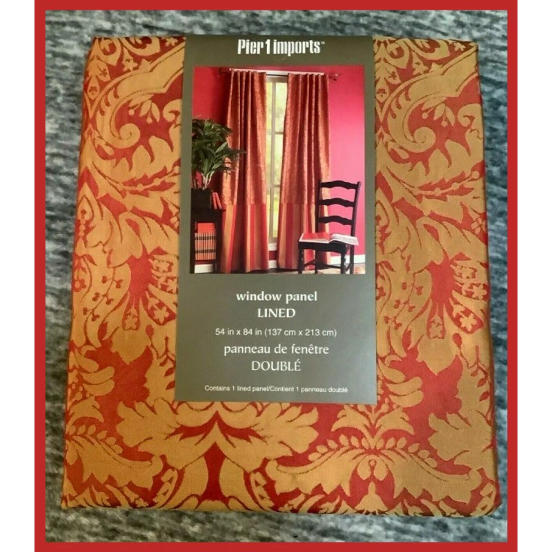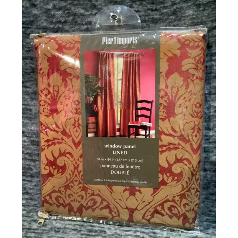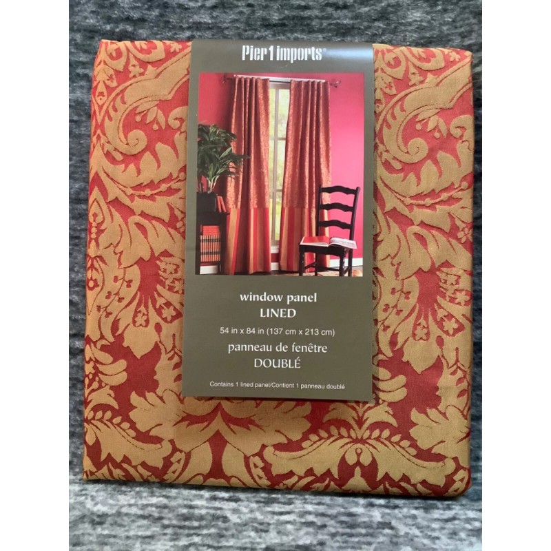 Pier 1 Imports Damask Window Curtain Panel (1) Rich Red Gold Striped 54" x 84"