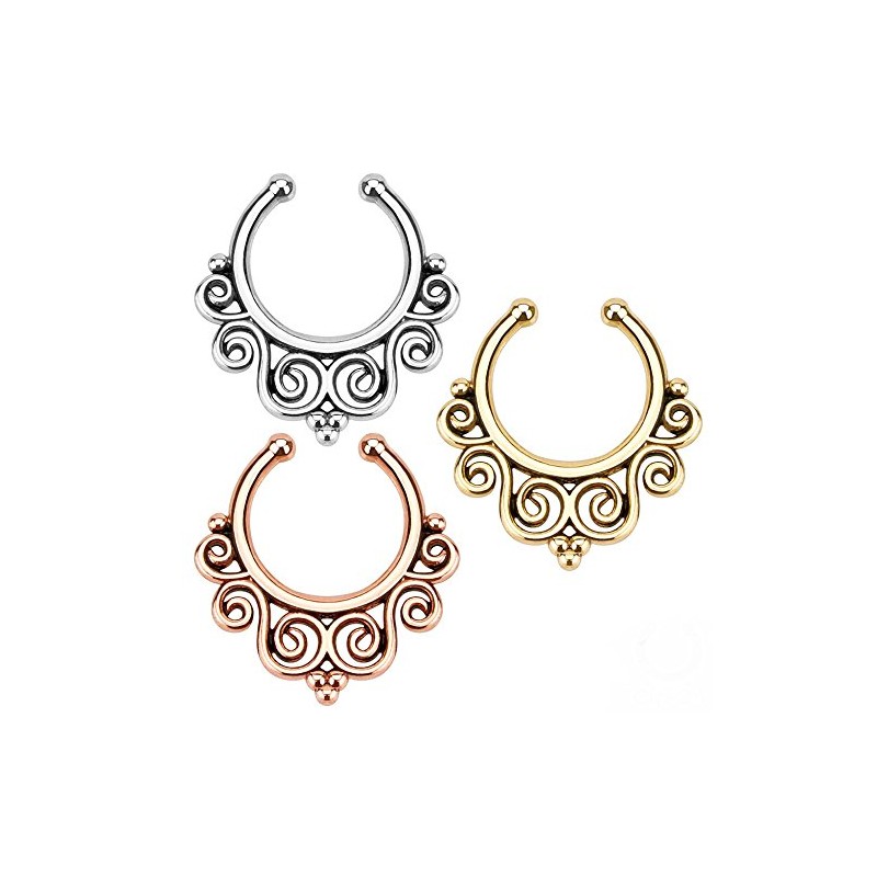 PIERCE ME (3pcs) Tribal Swirls 5/16" Hoop Non-Piercing Septum Hangers #004