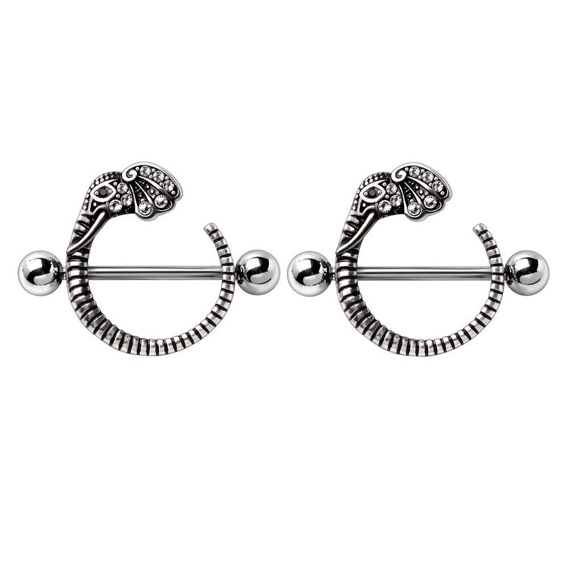 - STYLE: CZ Crystal Paved Elephant Head Nipple Shields - 5mm ball size
