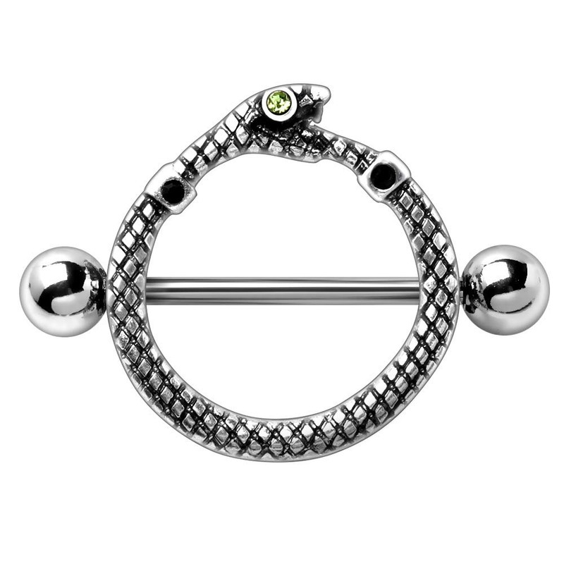 - STYLE: Full Circle Snake Biting Tail Nipple Shields