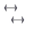 - STYLE: Internally Threaded Triple CZ Crystal and Ball Clusters Nipple Barbells