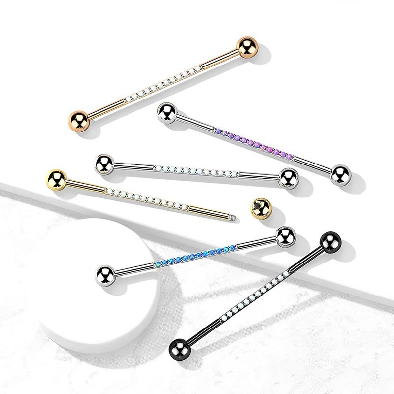 Pierced Owl - 14GA G23 Implant Grade Titanium Synthetic Opal Lined Industrial Barbell, Metal, synthetic opal
