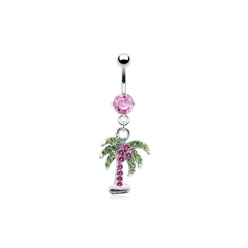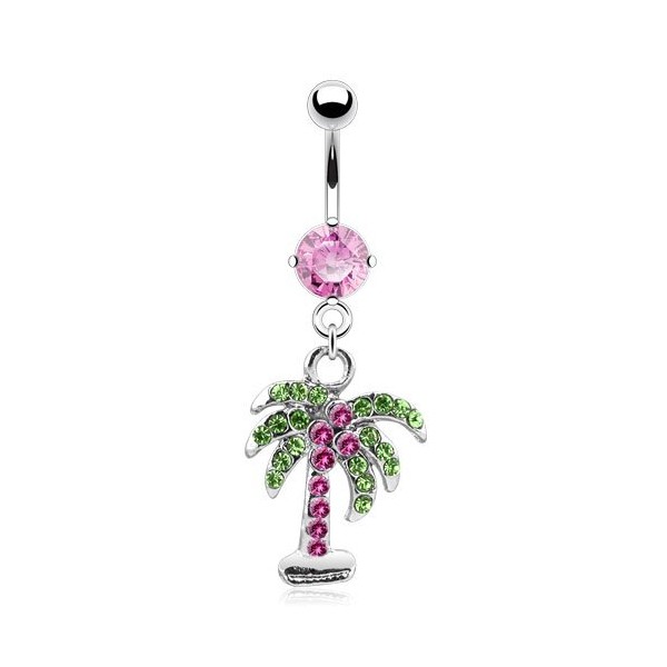 - STYLE: CZ Crystal Gemmed Palm Tree Dangling Belly Button Ring