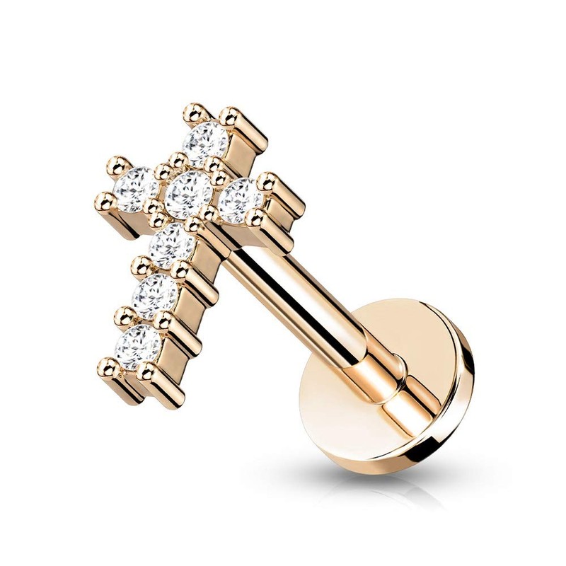 - STYLE: Internally Threaded CZ Crystal Paved Cross Top Flat Back Lip Cartilage Stud
