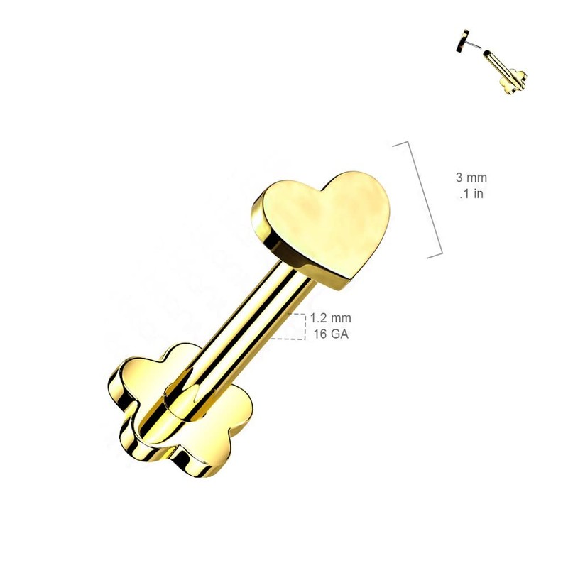 - STYLE: Heart Top Threadless Push in Flower Base Stud