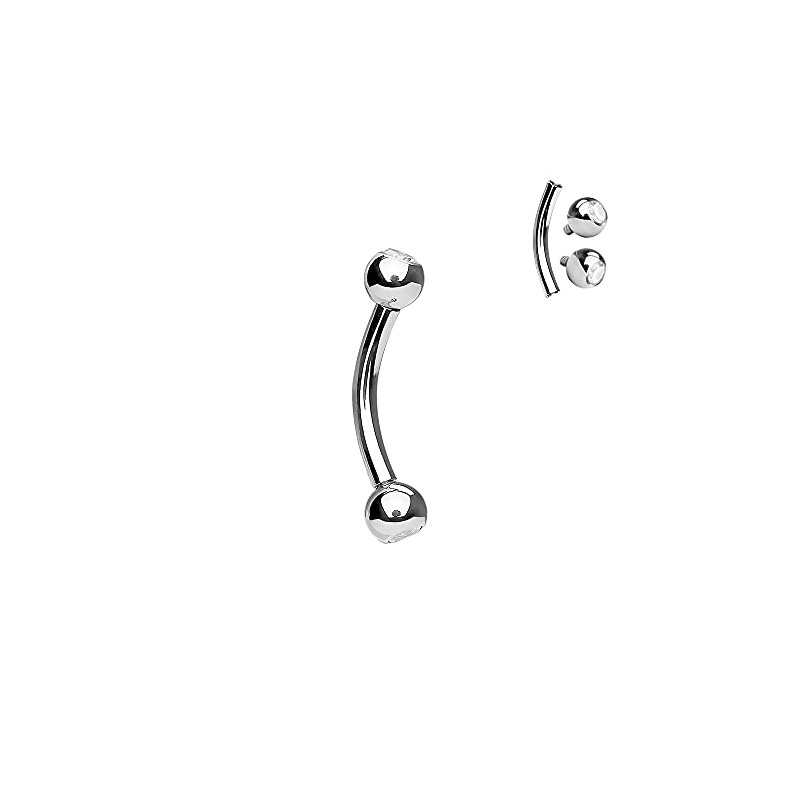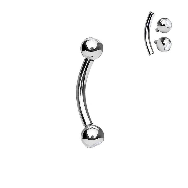 Pierced Owl - 16GA G23 Implant Grade Titanium Internally Threaded Crystal Gem Ends Curved Barbell, Titanium, Cubic Zirconia, cubic-zirconia