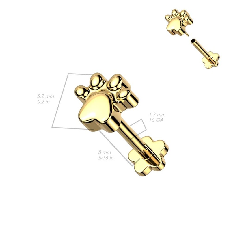 Pierced Owl 16GA G23 Implant Grade Titanium Paw Print Top Threadless Push-in ...