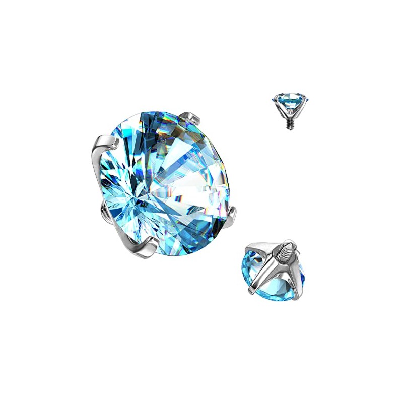 Pierced Owl 16GA G23 Implant Grade Titanium Prong Set CZ Crystal Internally Threaded Dermal Anchor Top (Aqua)