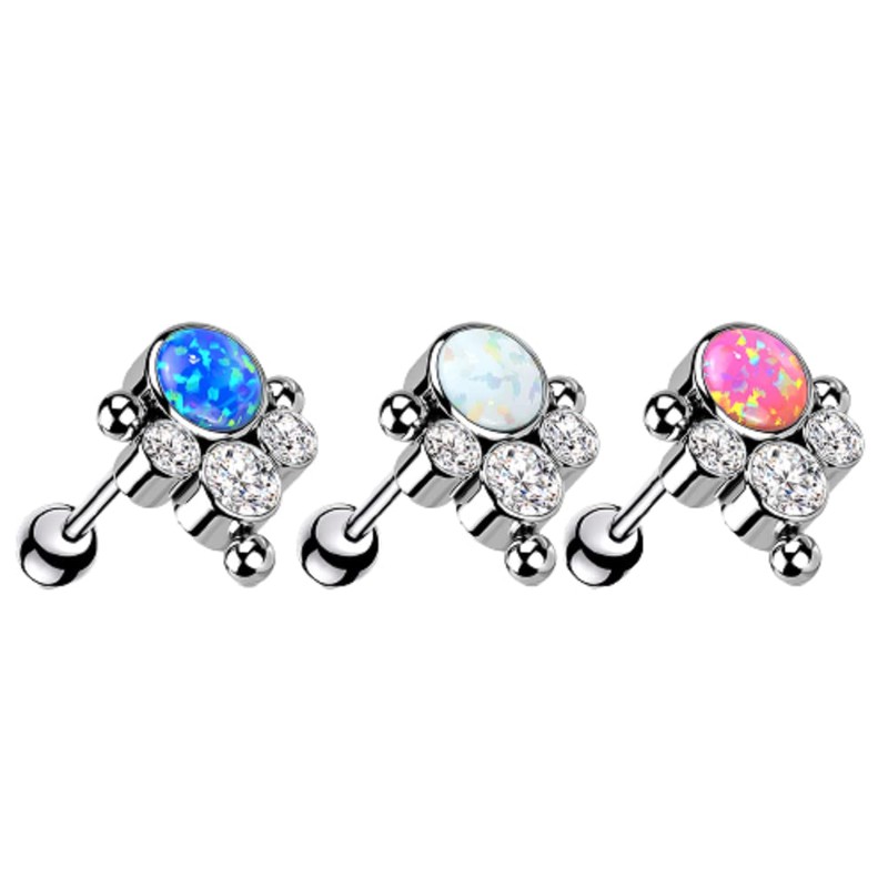 - STYLE: Synthetic Opal with CZ Crystal Ball Cluster Threadless Push-in Barbell