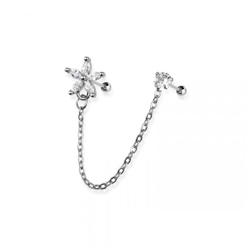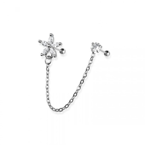 - STYLE: Flower and Round CZ Crystal Connecting Chain Linked Cartilage Barbells