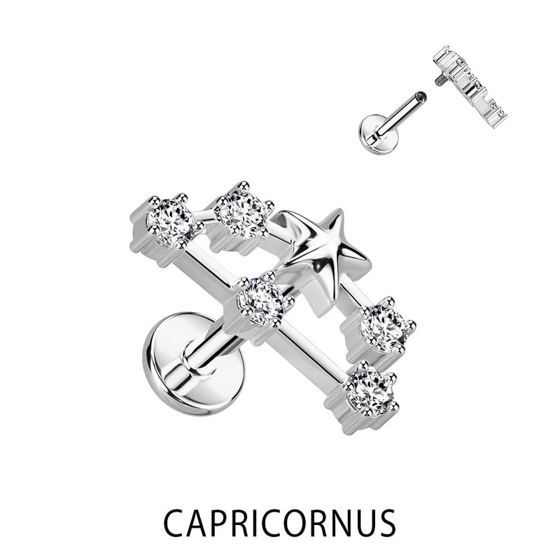 Pierced Owl 18GA 316L Stainless Steel Internally Threaded CZ Crystal Zodiac Constellation Flat Back Stud (Capricorn)
