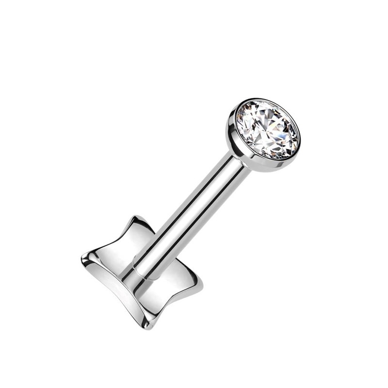 Pierced Owl 18GA ASTM F-136 Implant Grade Titanium Threadless Push-In Bezel Set CZ Crystal Top Diamond Shaped Base Flat Back Stud (Silver Tone)