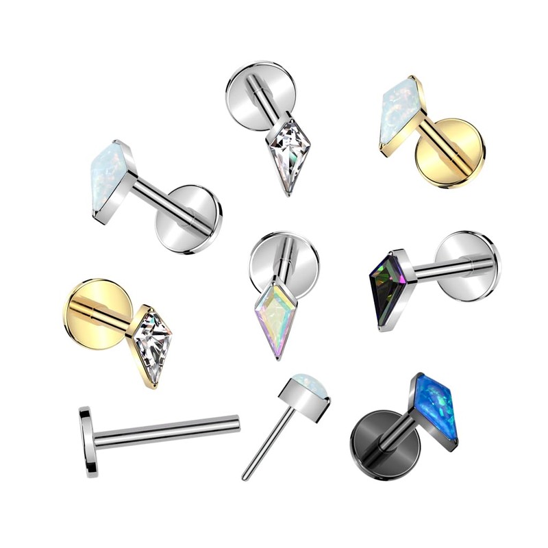 - STYLE: Threadless Push-In Diamond Shaped Synthetic Opal Flat Back Stud