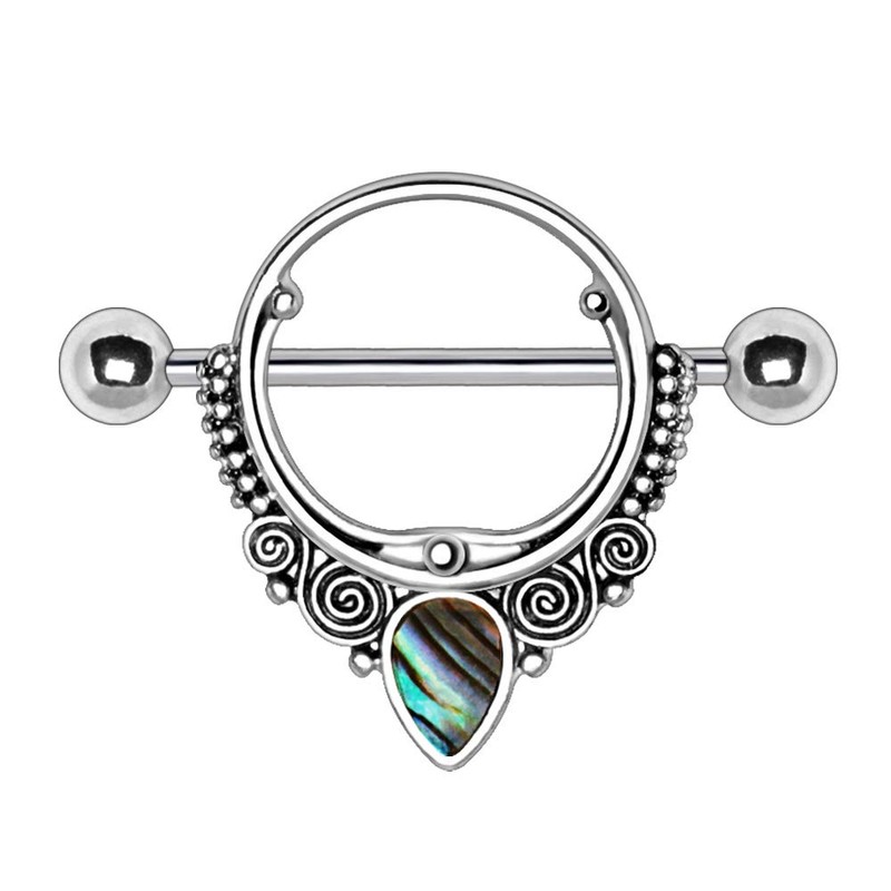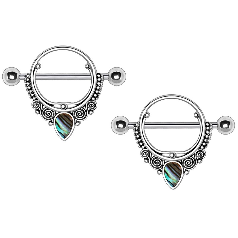 - STYLE: Abalone Teardrop Ornate Nipple Shields