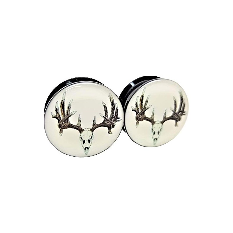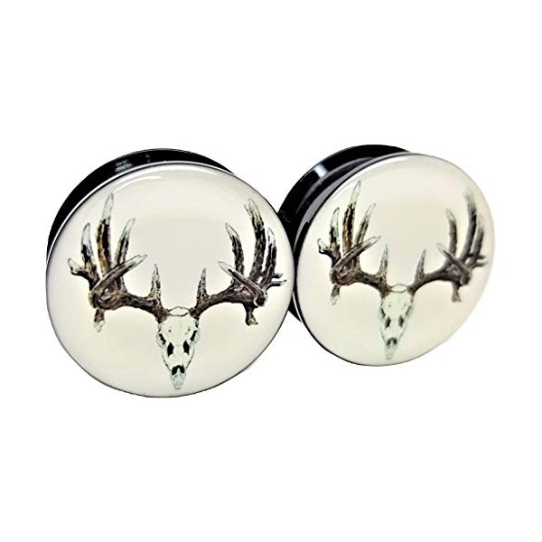 Pierced Republic Deer Skull Ear Plugs - Acrylic Screw-On - 10 Sizes - *Pair* (0 Gauge (8mm))