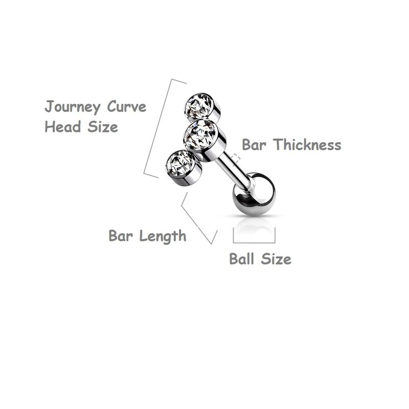PiercedOff Titanium Cartilage Barbell with 3-Bezel Set Round Clear Austrian Crystal Top - Thickness 16GA (1.2mm) / Length 6mm / Ball Size 4mm and Crystal Top 4mm x 9mm