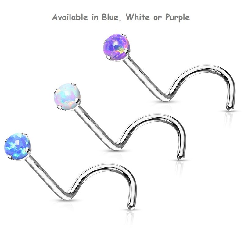 PiercedOff Titanium Nose Screw with Blue Synthetic Opal - Thickness 20GA (0.8mm) / Opal Ball Size 2.5mm