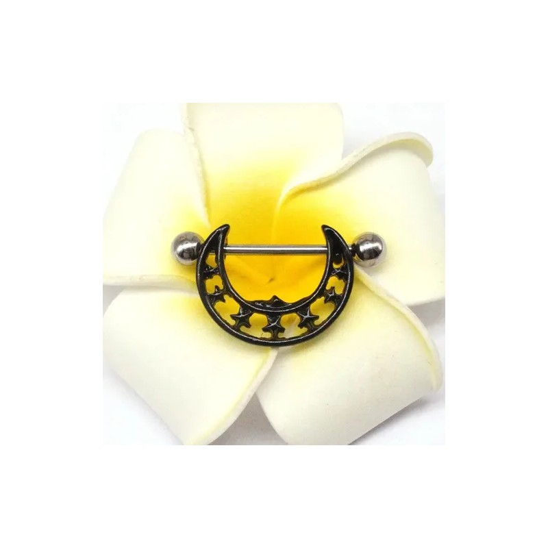 ( Piercing En V Pezon Par Acero Quirúrgico Luna Negra .
