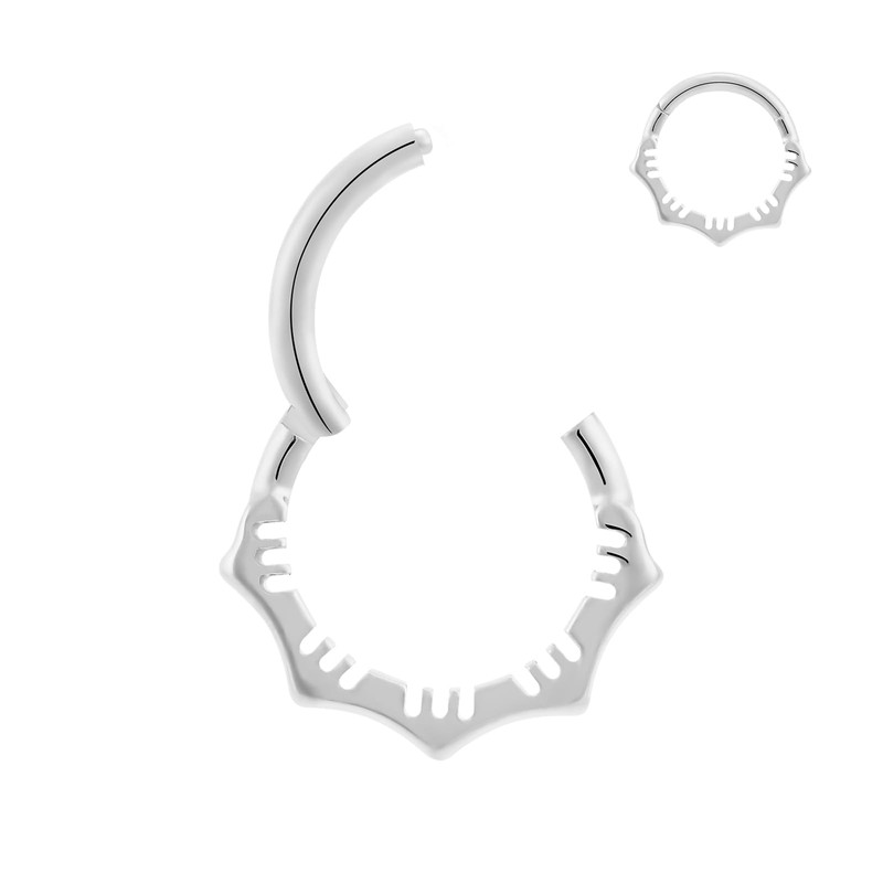 This hinged segment ring is very easy to use making it ideal for when you need to take your body piercing jewelry on and off on a regular basis.