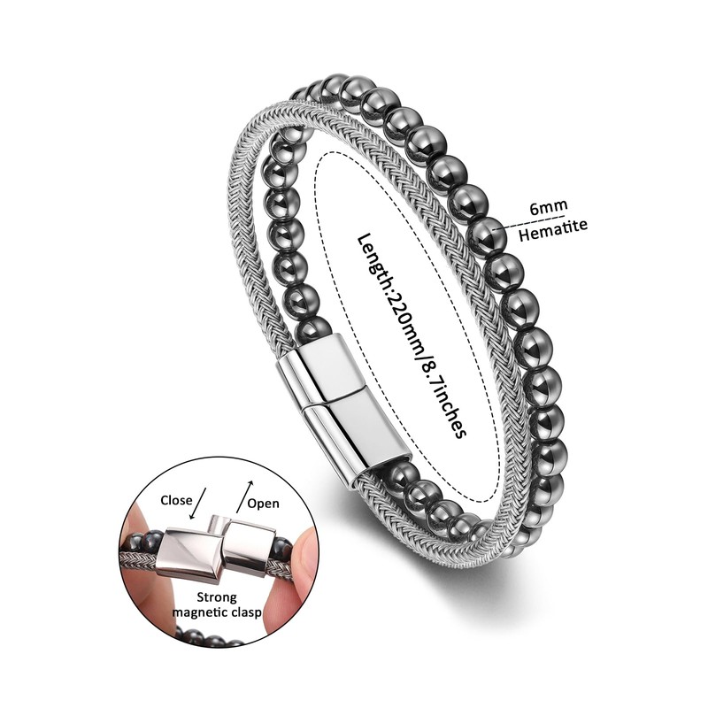 - ❤Hematite Bracelet Size: The size of the stainless steel bracelet is 8.6 inch (Fit for wrist no more than 8.1 inch), Hematite Beads: 6 mm, Chain width: 4mm. The unique double-layer structure design is rich in layers and has outstanding visual effects, adding three-dimensional beauty to the wrist.