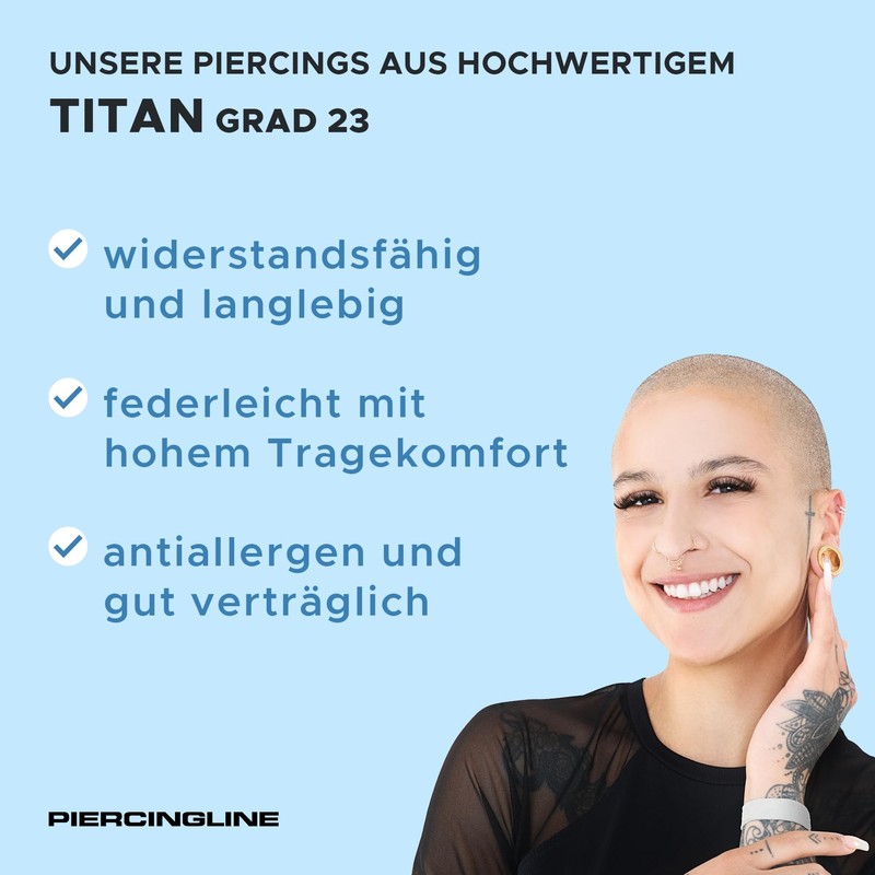 - Skin-friendly titanium, anti-allergenic and feather-light for perfect comfort, also suitable as a first use